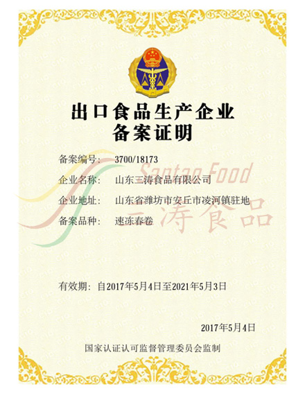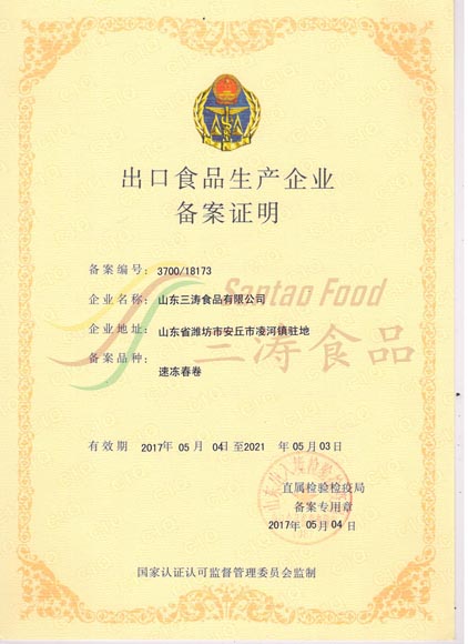 速凍春卷出口備案證明 -