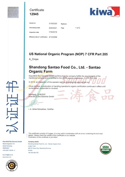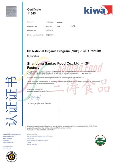 IQF加工廠有機(jī)認(rèn)證 -